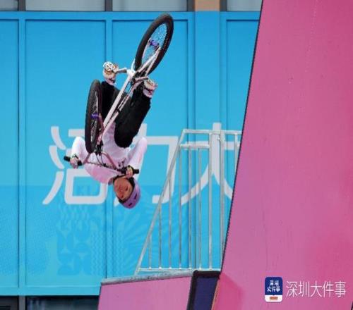 2025年10月25日,十五运会女子自由式公园赛决赛,广东队的雷珊珊使出一招空中摆尾,她在该项目获得铜牌。