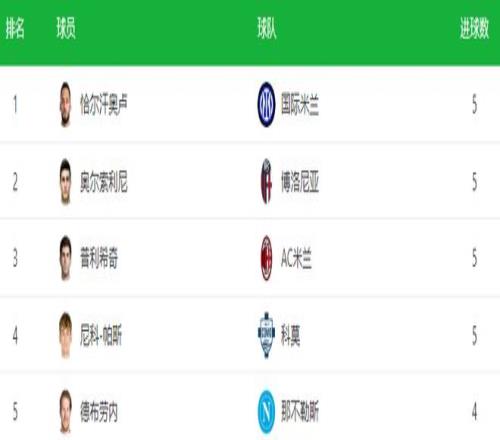 在意甲射手榜上,尼科-帕斯以5粒进球的成绩,同普利希奇、恰尔汗奥卢(含2粒点球)以及奥尔索利尼(含2粒点球)并列意甲射手榜首位。