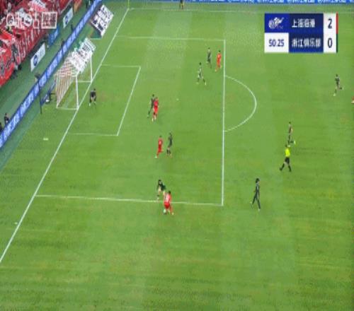 第29轮,上海海港vs浙江,王燊超极限角度凌空抽射破门