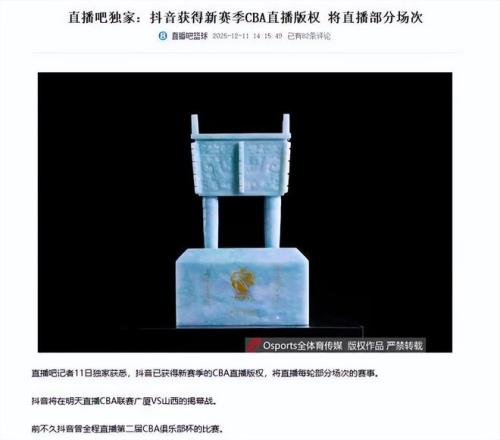 多家媒体和记者确认了这一重磅消息,直播吧独家报道:抖音获得新赛季CBA直播版权,将直播部分场次。看来一些不重的场次没有直播。篮球记者贾磊报道,“抖音与CBA的版权合作将以直播+带货等模式带来全新的商业转化方式。”