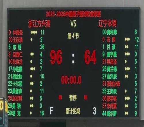 此役,方兴渡以96:64大胜辽宁,成功“复仇”。方兴渡全队五人得分上双,巴里·布朗拿下全场最高的26分,塔克进账16分;辽宁仅有两人得分上双,杰伦·布朗和付豪分别得到12分和11分。