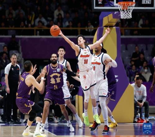 1月3日,广东东阳光队球员李文昊(上)在比赛中争球。