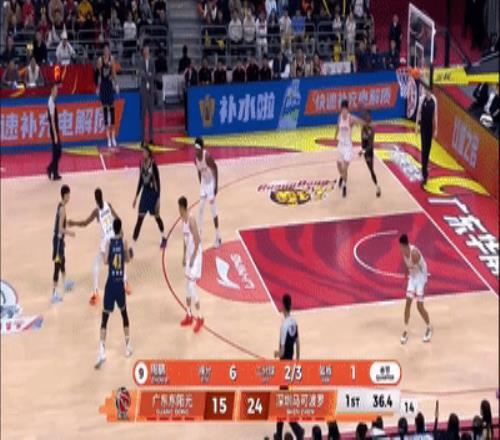 第一节1分53秒,广东发底线球,萨林杰迅速传给了空位的王洪泽,但王洪泽在接球后完全没有透露的意向,想都没想就直接把球转移给徐杰。
