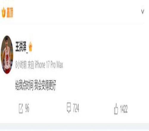 在本场比赛结束后,一向低调的王洪泽在赛后发了这么一条动态:给我点时间,我会变得更好。评论区下方有大量球迷向他表达了鼓励,王洪泽几乎就不怎么玩社交媒体,这次他之所以会罕见的向球迷喊话,主要还是他近期的表现实在太糟糕了,有点辜负教练、队友、球迷的期待。
